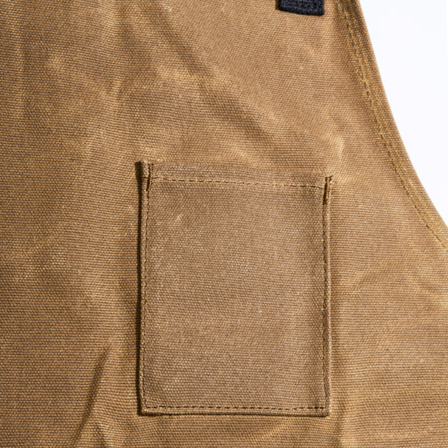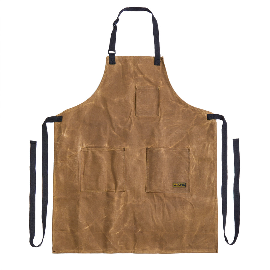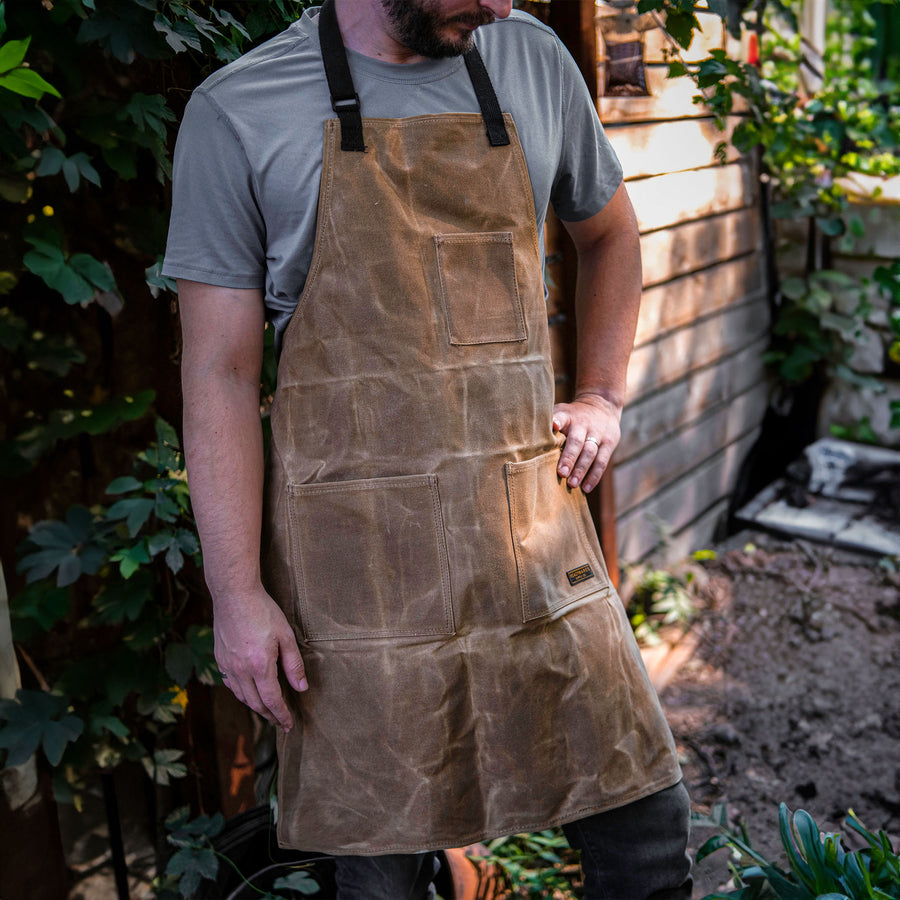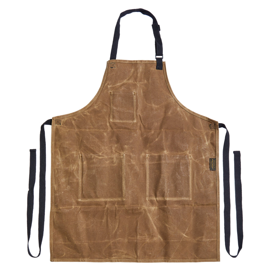 The Utility Apron is constructed using a high-quality 16oz waxed canvas that provides protection against liquids while giving the apron a timeless look. Adjustable to fit a wide range of sizes, this apron looks great on both men and women. The waxed canvas may feel stiff upon first use, but it will loosen as the apron is used.